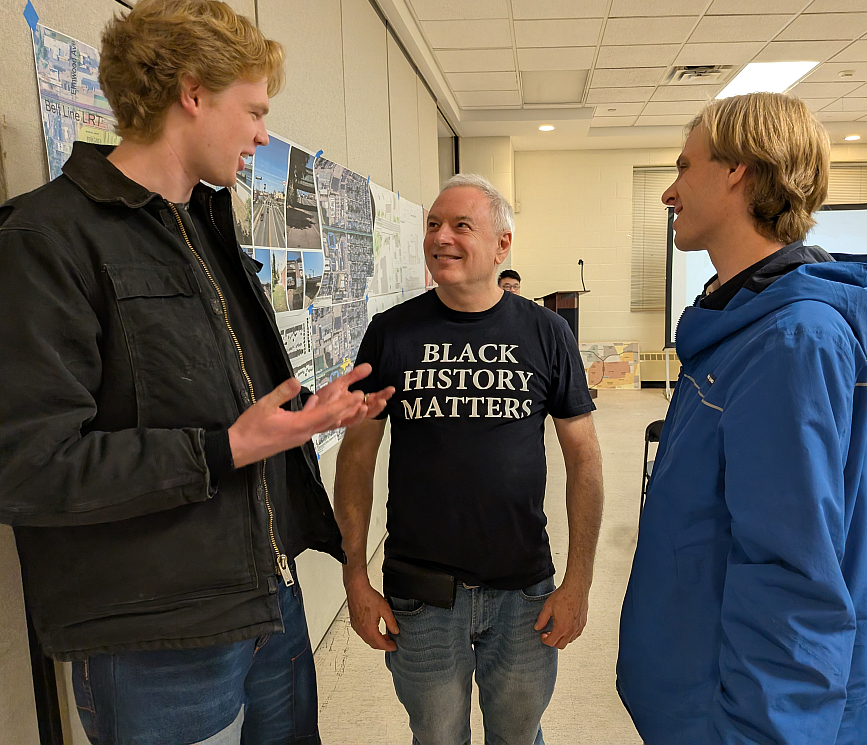 UB Small Built Works Project students discuss light rail with Citizens for Regional Transit representative Jim Gordon.