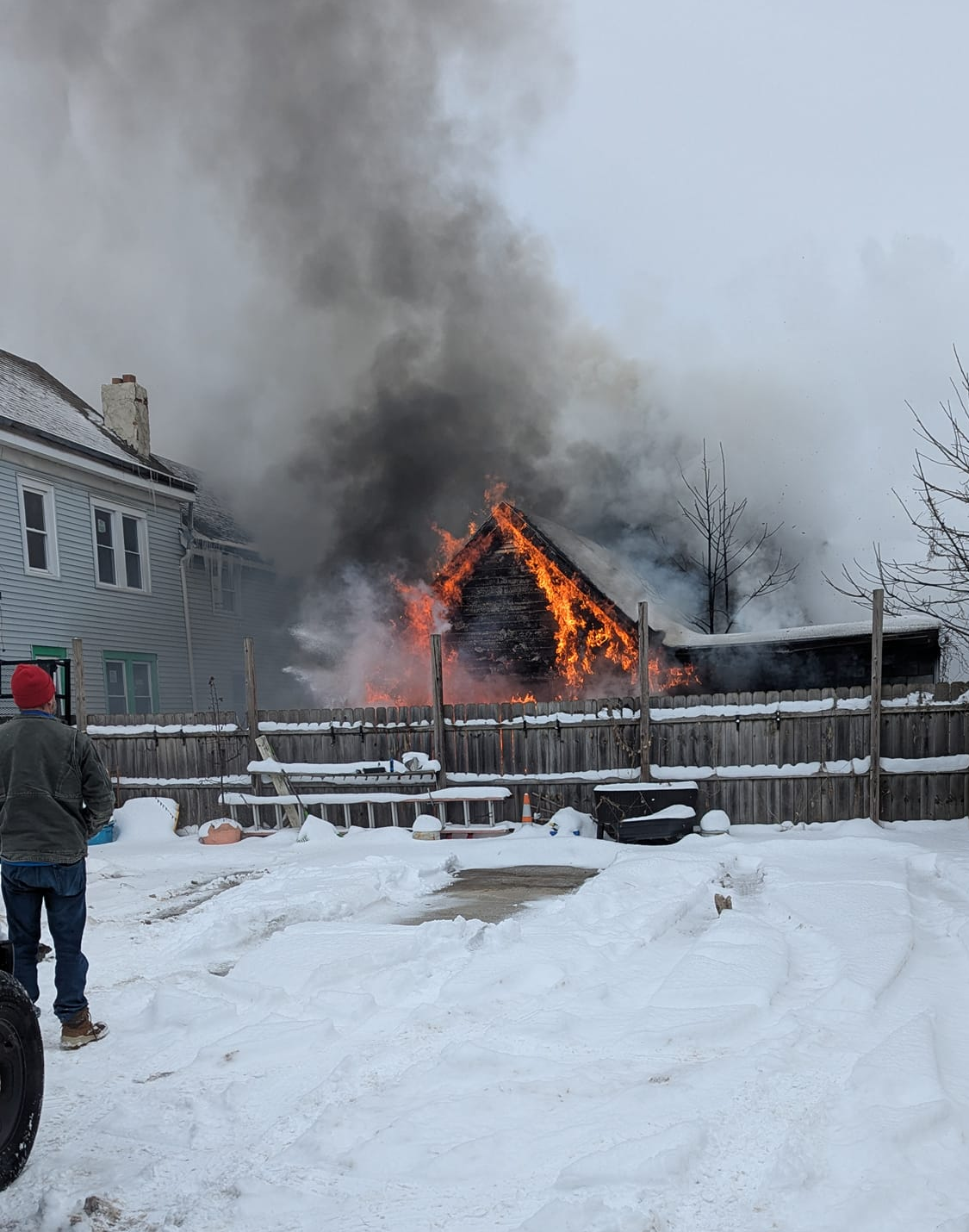 Image of fire at 320 Plymouth Ave. circulated by Facebook User Alexia.