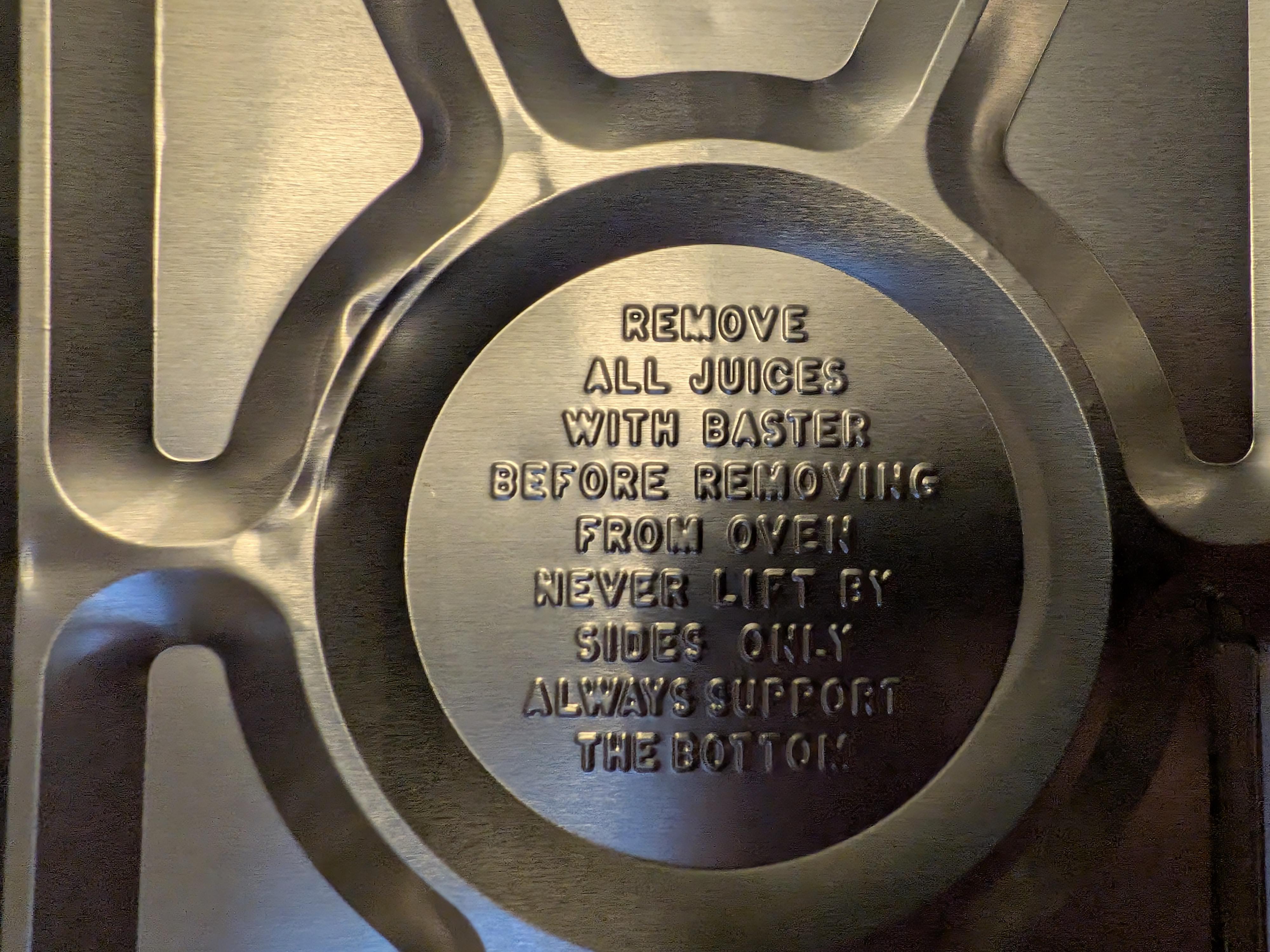 An actual warning on the bottom of a tin I bought to cook the turkey. Next up: A teapot that warns not to add water. Happy TG!